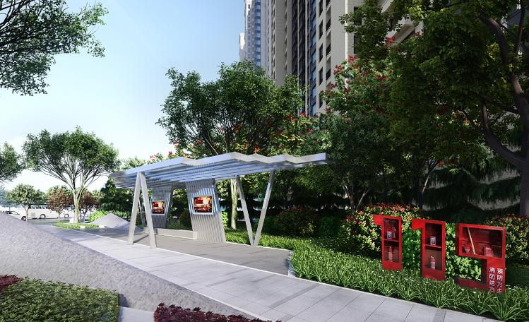 公园设计定位为消防教育主题绿地,街角设置消防文化宣传廊架、局部点缀消防主题趣味小品、消防知识牌、复合型廊架、公共卫生间等设施。场地在保留现状植物的基础上增加榉树、樱花、海棠等植物。