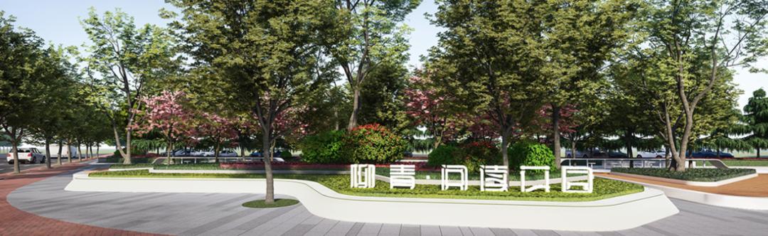 公园以陪伴、关爱、时光为设计主题。公园设有主题景墙标识、特色休闲坐凳、休闲廊架、公共卫生间等设施。树种搭配在保留现状长势良好的柳树、松树、紫叶李基础上,增加榉树、樱花等树种。