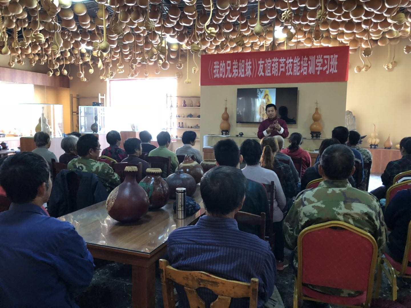 从葫芦中看到商机之后,马友谊一直想把这门技术发扬光大、让周边的群众受益。他常说,“我是党员,要发挥先锋模范作用,把葫芦雕刻推广出去,让更多人通过小葫芦实现脱贫致富。”2002年起,他就带动周围群众发展葫芦种植,并高价收购成熟的葫芦,带动了50多名村民致富。作为文祖街道“齐鲁古道·非遗文祖”志愿服务先锋队的典型代表,马友谊热心助残和扶贫工作,开展志愿服务,先后免费培训残疾贫困人员200余人,并专门设计研发了十余种适合残疾贫困人员学习制作的葫芦工艺制品,让他们生活更幸福。