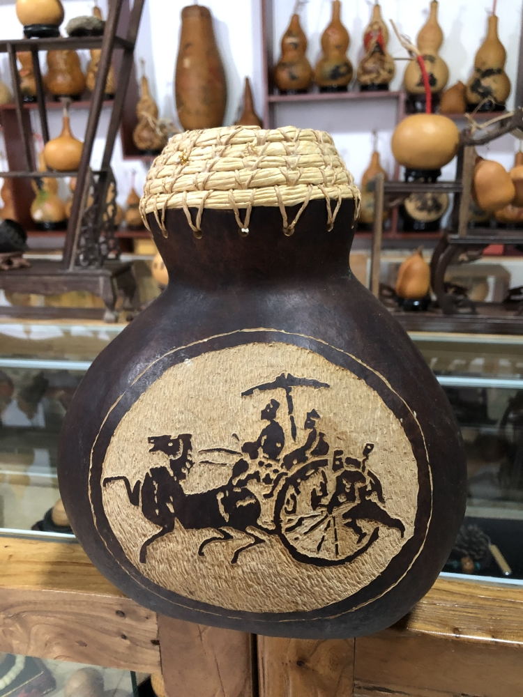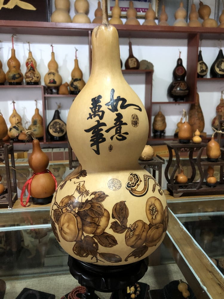 济南友谊葫芦文化发展有限公司坐落于文祖街道北部,章莱路东侧,“齐鲁古道·文旅走廊”上,年手工雕刻葫芦5000余个,机雕葫芦20余万个,出售各类白皮葫芦60余万个,年产值近500万元。走进公司展厅,会看到一个琳琅满目的葫芦世界,博古架上摆满了形式各异、优美绝伦的葫芦雕刻艺术品。按品种有亚腰葫芦、大瓢葫芦、油捶葫芦、鹤首葫芦、疙瘩葫芦、苹果葫芦等,按工艺有雕刻、镂空、烙画等,作品既有古典名著、神话传说中的人物,也有花鸟虫鱼、山水风景等。形形色色、神态各异的葫芦作品,无不栩栩如生、呼之欲出,让人拍案叫绝。
