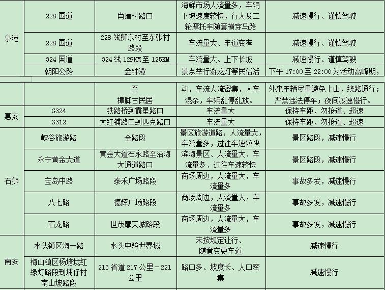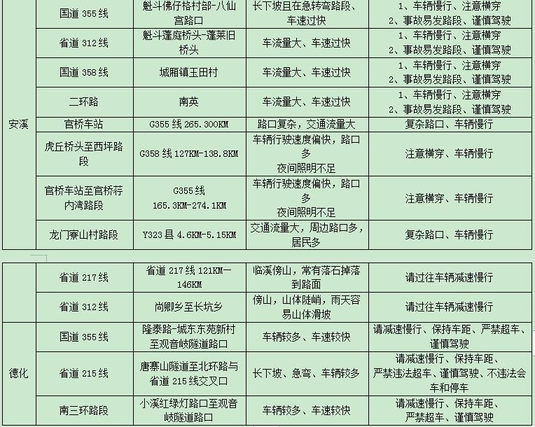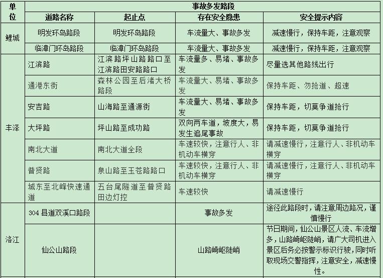 元宵期间部分道路危险路段、事故多发点段