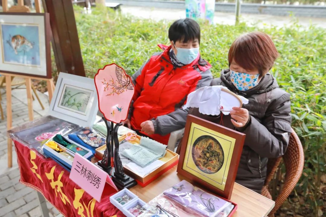 在民俗体验区,瓷刻、三林标布、三林刺绣以及绝版木刻、剪纸、面塑、草编、糖画、龙凤字、枣核微刻船模、蛋空微雕……一个个非遗项目展位依次排开,令人眼花缭乱、目不暇接。