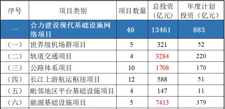 在现代基础设施网络项目中,能源基础设施项目投资金额达到7413亿元,占2万亿总投资额的36%。尽管这是投入最大板块,但其中只有5个项目,包括川渝千亿方天然气基地、川渝特高压交流工程、中国航油西南战略储运基地等。