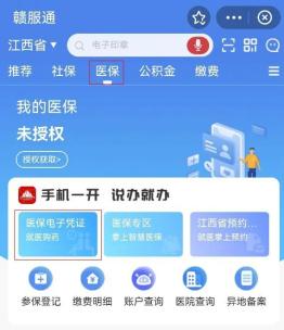 1.支付宝搜索赣服通进入平台,滑动至医保,选择医保电子凭证服务。