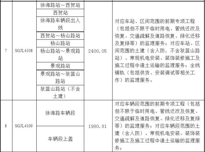 徐州市城市轨道交通4号线一期工程线路全长26.2km,共设站19座,含换乘站8座,全线为地下线。新建徐海路车辆段一座;无新建主变电所,与既有线路主变电所实现资源共享。项目共分为8个标段,此次8个标段全部进行监理招标。