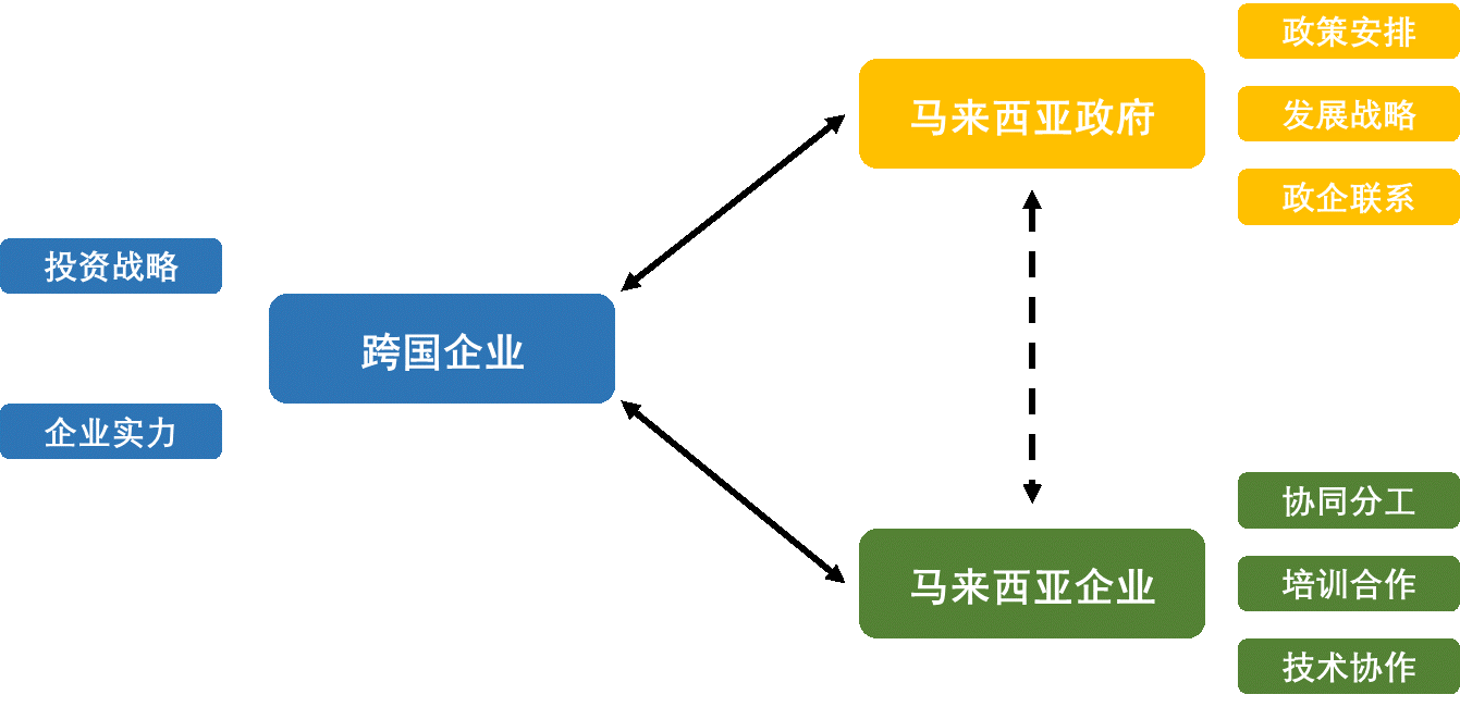 目前,跨国公司的外国直接投资行为普遍被认为受到本国和东道国的政策环境的制约。[16]5本国政府对于跨国公司国内经营的限制或者对于对外直接投资的鼓励都可能对外国直接投资产生重要影响。跨国公司直接投资的国际化也受到东道国优惠贸易协议、财政激励、潜在市场、生产供应情况等多方面因素的影响。[17]尽管宏观因素在吸引中国投资者到马来西亚投资方面发挥了重要作用,但在微观层面上,跨国公司和企业、工会和商会等当地利益相关者之间复杂和动态的关系对其本地经营有直接作用。[18]跨国公司和东道国政府与企业之间的互动行为可以对其投资成败的结果做出大部分解释。此外,在比较不同企业的投资案例时,企业自身在综合实力、投资动因等方面的因素也不能忽视。