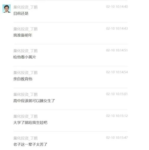 中国量化投资学会理事长丁鹏在微信群里,发表了他的家教观念,简直让人惊掉下巴。