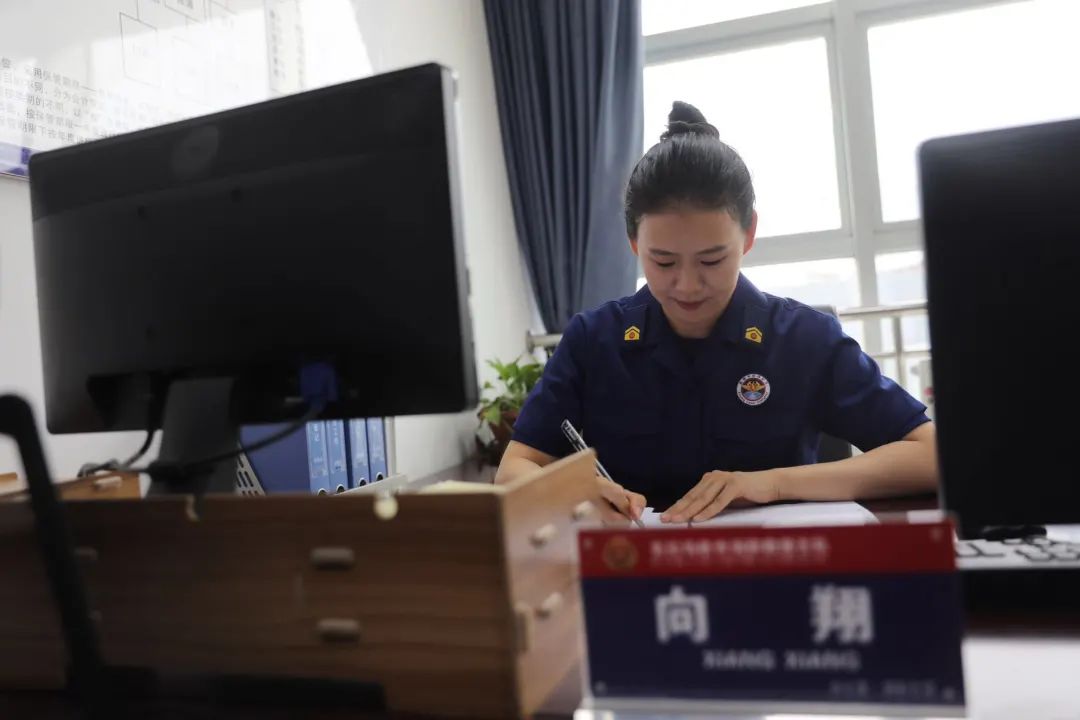 克拉玛依市消防救援支队办公室文员向翔,工作8年时间,自加入消防工作以来,她就是同事们心目中踏实肯干的优秀代表。