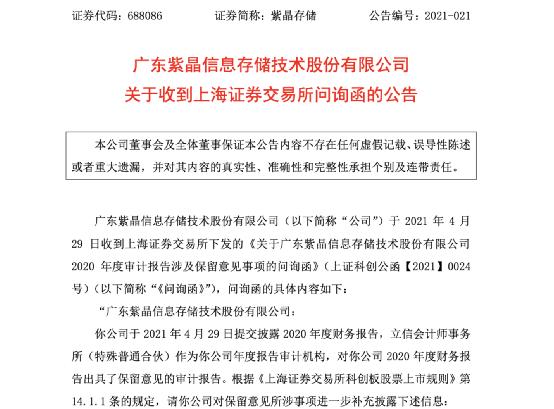 虽然紫晶存储披露的公告暂未对信披违规所涉及的具体事项作出说明,但市场认为这大概率与2020年年报有关。