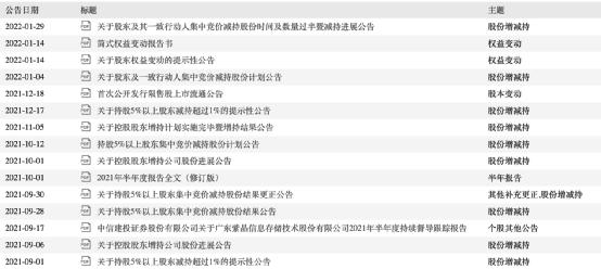 1月13日,紫晶存储公布,达晨创联及其一致行动人合计持有的公司股份数量和比例于2021年3月15日至2022年1月12日期间由1572.5109万股(占公司总股本的8.2598%)减少至951.9002万股(占公司总股本的4.99996%),不再是合计持有公司5%以上股份的股东。