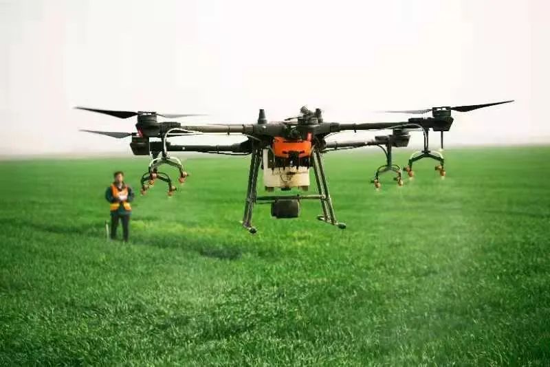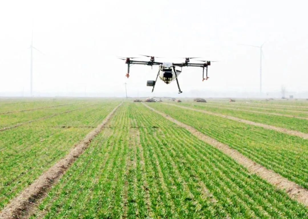 图为齐力新农业服务有限公司对托管土地进行飞防作业 图/德州日报记者王志伟