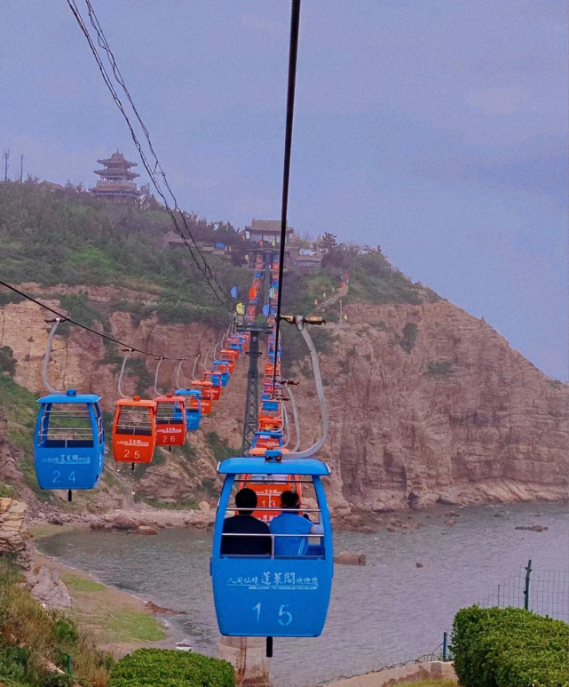 最后,登上丹崖山巅的蓬莱阁,扶栏四顾,海、天、城尽收眼底。远眺黄渤海分界线,俯瞰蓬莱水城,了解古代海上丝绸之路情况,观看水城炮台和古代舰船入海口,听取明代爱国将领戚继光操练水师、保卫海防等历史介绍。坐一次跨海索道,看一半山色,一半海景,山海依偎,万种风情。