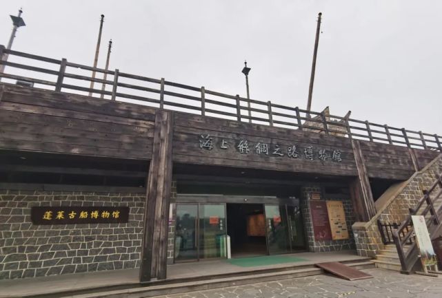蓬莱海上丝绸之路博物馆位于蓬莱阁小海的西南岸,是一座以古登州港与出土古船为主题的专业性遗址博物馆。馆内主要展示了在蓬莱出土的 4 艘元明时期的中外古船、紫檀木舵杆、黄花梨造船木、木锚、云龙纹白釉罐、宋耀州窑刻牡丹纹执壶、碗口炮等国家珍贵文物。这是国内第二个陈列古船的专题性博物馆,是研究我国古代军港、传统造船技术和东方海上丝绸之路不可多得的实物史料。