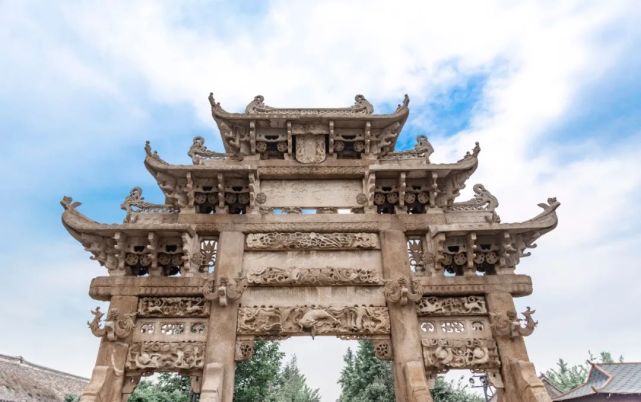戚继光的祖母阎氏(知府阎琮之妹),24岁守寡,靠纺织度日,抚养孤儿。戚继光的父亲戚景通,官至京城神机营副将,因怀念老母,辞官还乡侍奉,因其孝闻名被荐举为孝廉。东面这座“母子节孝”坊是朝廷为褒扬戚继光的祖母和他的父亲而立。牌坊中间额书“旌表赠特进荣禄大夫中军都督府右都督戚宁妻一品夫人贞节阎氏”。“诰赠特进荣禄大夫中军都督府右都督荐举孝廉戚景通”。牌坊上下分三层雕刻,东上层是“丹凤朝阳”。中层早已毁坏,底层是“麟麒与凤凰”;西上层是“二龙戏珠”,中层是“南海大士与八仙”,底层是“狮子滚绣球”。西面这座“父子总督”坊,是朝廷为表彰戚继光和他的父亲的功绩而建的。牌坊中间额书:“诰赠骠骑将军护国都指挥使前总督山东备倭戚景通”、“镇守浙福江广郴桂总兵都督同知前总督备倭戚继光”。牌坊上下也分三层雕刻:东上层是“二龙戏珠”,中层是“戚继光征战图”,底层是“狮子滚绣球”,西上层是“凤凰穿牡丹”,中层是“鱼龙变化”,底层是“麒麟与凤凰”。