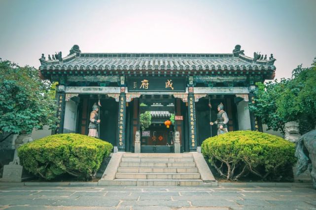 景区内有戚继光的故居戚府,为北方园林的代表作,既有南方园林的秀美,同时不失豁达大气。提到戚府,便不能不追溯戚家的历史。戚继光的远祖是在河南卫辉府,他的六世祖戚祥跟随朱元璋在推翻元朝,建立明朝政权的斗争中,成为开国功臣,为了追念他的功绩,明政府授予其子戚斌为明威将军,世袭登州卫指挥佥事。所以,自戚继光的五世祖戚斌开始,这里就一直是戚氏族人聚居的地方。到了清代,戚氏家族逐渐败落,祖居渐成废墟,民国初年,仅有的一点房产也授与他人。现在重修的戚府,是按照明代建筑风格恢复的,占地面积19000平方米,建筑面积2210平方米。明朝官员府邸建筑是有等级要求的,戚继光官级一品,按规定为五间五架,所以这里的厅堂全都是五开间。