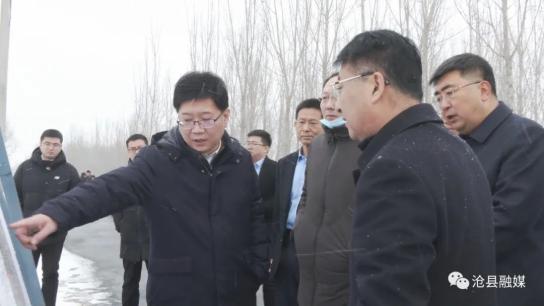 沧县县委书记杨猛一行先后来到纸房头镇侯庄子村、黑龙港河堤顶路等地,认真听取了相关负责人的汇报,并提出具体指导意见。