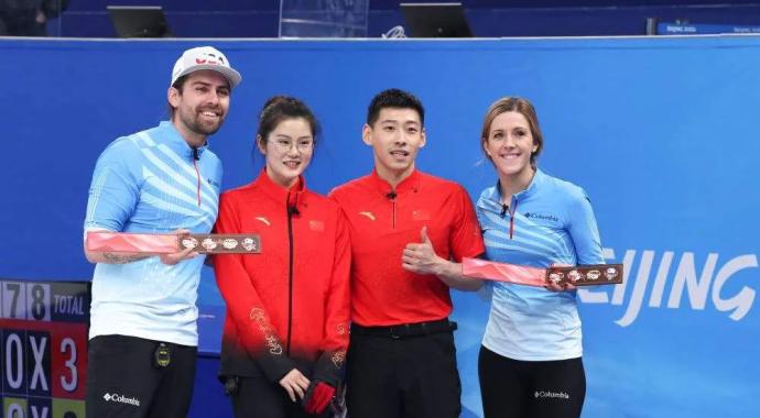中国冰壶混双组合凌智和范苏圆在与美国组合比赛结束后,向对方赠送了“冰墩墩”奥运纪念徽章,惊喜的美国组合很快晒出了礼物照片——这是为中国同行的友善点赞。