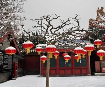 其实,在我的记忆中,每年的正月天都下雪。大年三十家家户户贴对联,红对联与白雪相映成趣。正月初一在雪地里烧年火,放鞭炮。孩子们围着年火取暖,争相捡拾掉在雪地上的炮仗。正月十五闹元宵,一伙伙的耍乐涌进城,人们穿红戴绿,在雪地表演舞龙灯、跑竹马、踩高跷、扭秧歌。街上的公家单位盘集火,搭彩棚。熊熊火焰从狮子、猪、兔子的嘴、眼、鼻孔中喷出。瑞雪飘飞,处处欢天喜地景象。