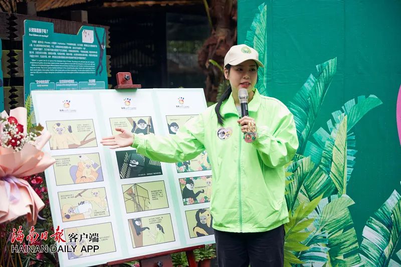 海野文创设计师特别向现场嘉宾展示了根据“命大”“亮亮”的特殊经历创作的手绘漫画、文创商品和祝贺绘画作品。随后,向“命大”“亮亮”献出诚挚祝福的爱情见证官亲手装点祝福果篮,向顺利完成合笼的“命大”和“亮亮”献上丰盛的水果大餐。现场还开展了长臂猿有奖科普知识竞赛、长臂猿科普展等丰富多样的科普活动。