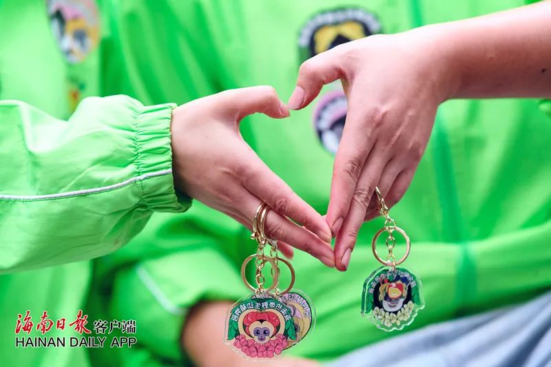 现场展示的主题纪念钥匙扣。海南日报记者 封烁 摄