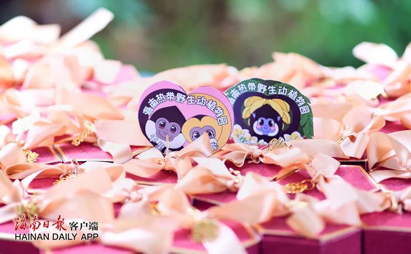 园方还特别定制10朵玫瑰和1枝香水百合的“一心一意”花束组合,祝愿“命大”和“亮亮”的爱情长长久久。现场还向游客朋友送出了十分喜庆的喜糖礼盒以及“命大”和“亮亮”为原型设计制作的钥匙扣,希望通过仪式感十足的伴手礼与社会公众共同分享两只长臂猿成功结缘的喜悦。