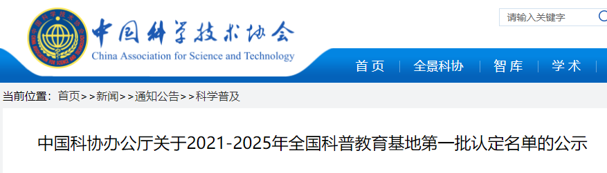 近日,中国科学技术协会官网公示《2021-2025年全国科普教育基地第一批认定名单》,按照《中国科协办公厅关于开展2021-2025年度全国科普教育基地创建工作的通知》(科协办发普字〔2021〕26号)要求,经评审有800家单位拟认定为全国科普教育基地,其中含博物馆、纪念馆165家。