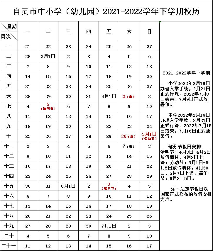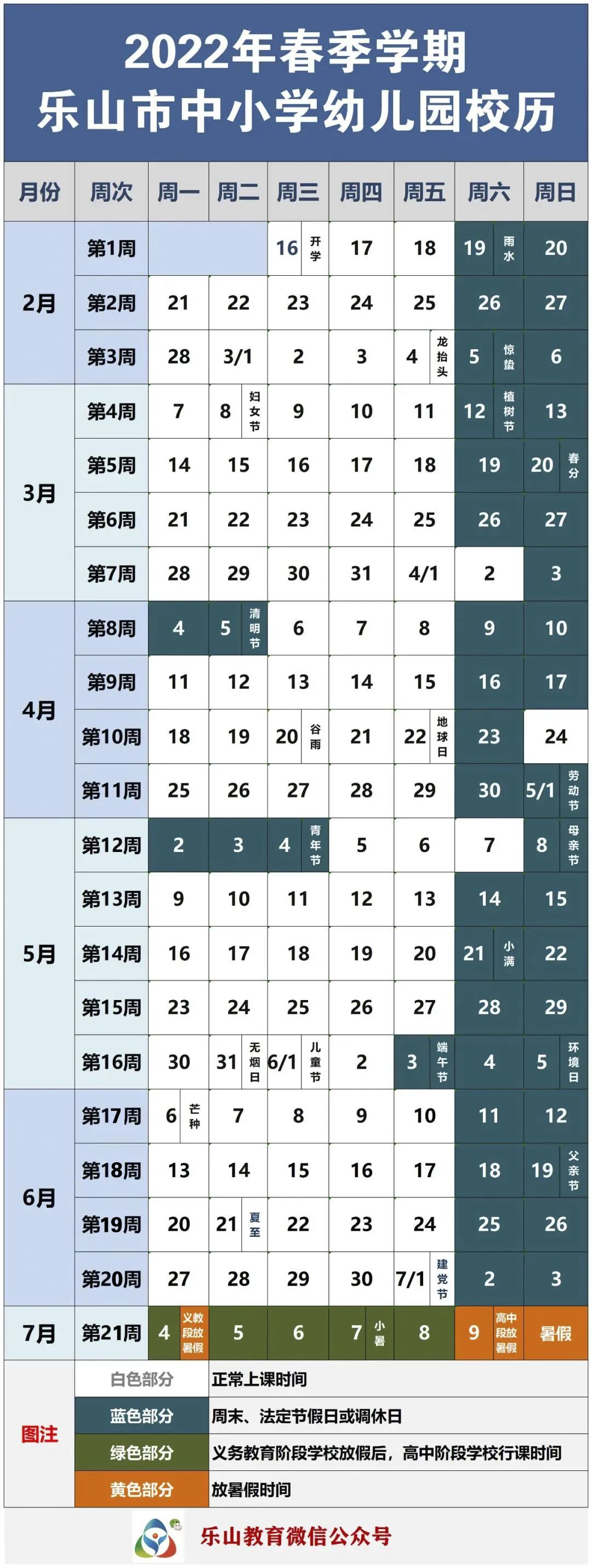 (一)小学(幼儿园)2022年2月18日教师返校,2月19日学生报到注册,2月21日正式行课,到7月8日结束,共计二十周(含复习考试和学校机动时间)。暑假从2022年7月9日开始到8月25日结束。