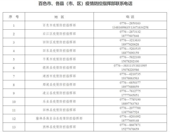 百色市新冠肺炎疫情防控工作领导小组指挥部