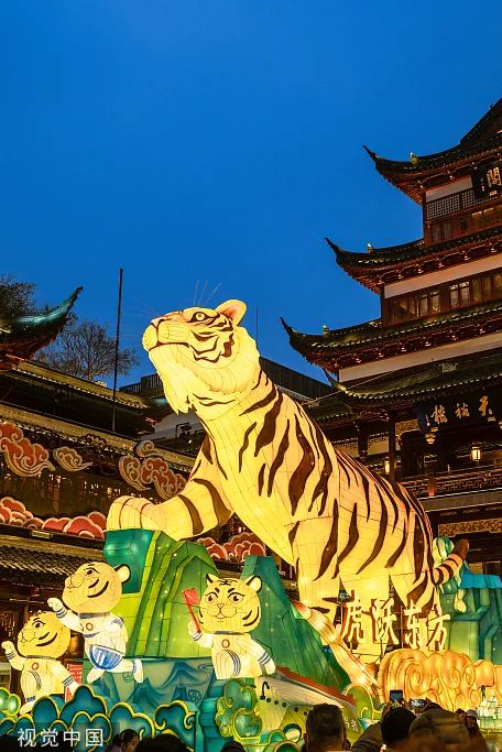 虎年来到,各大灯会上当然也少不了老虎灯的身影。金黄的灯光为老虎披上威武的外衣,在夜色下熠熠生辉。