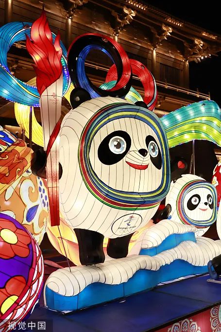 冰墩墩无疑是今年的绝对顶流!生活中到处都可以见到冰墩墩的身影,灯会它又怎会缺席?圆圆滚滚的冰墩墩就像白白胖胖的元宵,为你送去元宵节的祝福!