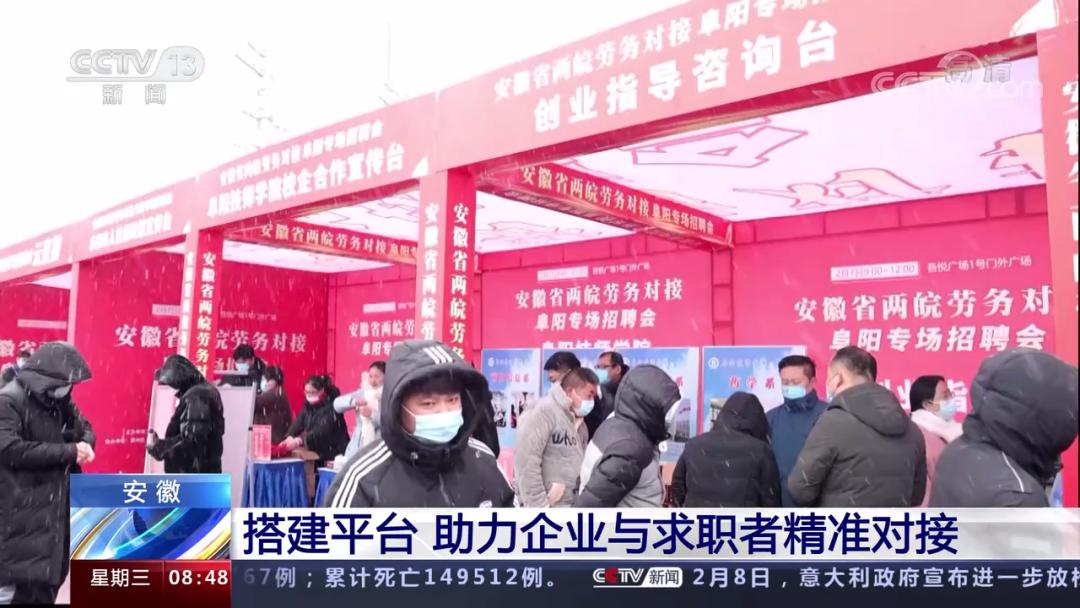 2月7日,安徽阜阳的一场大型对接会吸引了不少求职者参加。举办方通过搭建平台,实现了将皖北地区的劳动力资源与皖南用工企业对接。