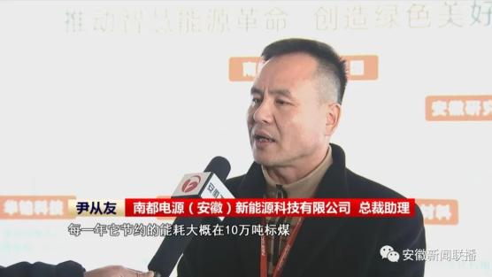 南都电源(安徽)新能源科技有限公司 总裁助理 尹从友:每一年它节约能耗大概在10万吨标煤,降低二氧化碳的排放大概是38万吨。