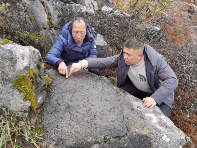 据联合调查组介绍:此次联合考察有三个惊喜发现:一是岩石上有阴刻的古彝文;二是发现古营盘上有“石刻军事沙盘”;三是发现在一块3至4平方米的石板上有刻画的军事地图和古彝文字,下步还将组织专家进行研究和释读。