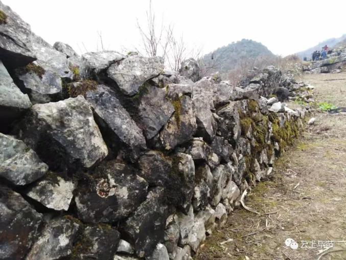 据联合调查组实地考证:此次考察的水西大营,方圆包围大小山头21个,城墙遗址有五段,现存长度约四公里,城门有四个,分别为官坟大营门、黑箐麻窝小营门、蜂子岩栅子门和崖窝栅子门,城墙厚度有2至3米,高的地方有5米,舂火药的石碓窝现存七个,其他相关遗迹还待进一步考察中。