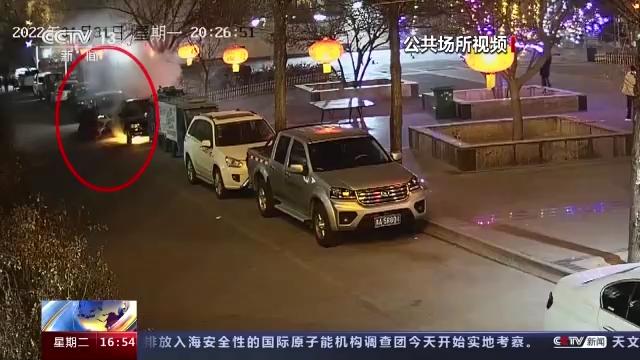 青海海东也发生过一起类似的汽车火灾。通过公共场所视频可以看到:1月31日晚上8点24分,青海海东民和县一处居民小区内有几个孩子在燃放烟花,就在这时,危险的一幕发生了,一团火花从天而降,直接掉落在一辆轿车的下面,并迅速释放出大量火花,直接将汽车引燃,周边居民及时找来灭火器进行扑救,火势没有向周边蔓延。