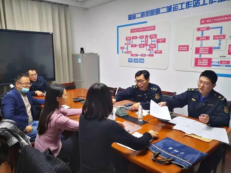 从去年初开始,黄浦区瑞金二路街道综合行政执法队分别入驻街道三个城运工作站,“每个站常驻5—6名城管队员,还有城运中心、派出所、市场所等各部门人员,共约60人。”瑞金二路街道综合行政执法队队长袁逸琳说。
