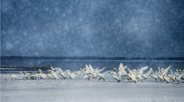 在这白雪飘零的季节,到天鹅湖畔,赴一场浪漫之约,用眼睛、用心灵与这些圣洁的白衣仙子进行一场自然和淳朴的对话……