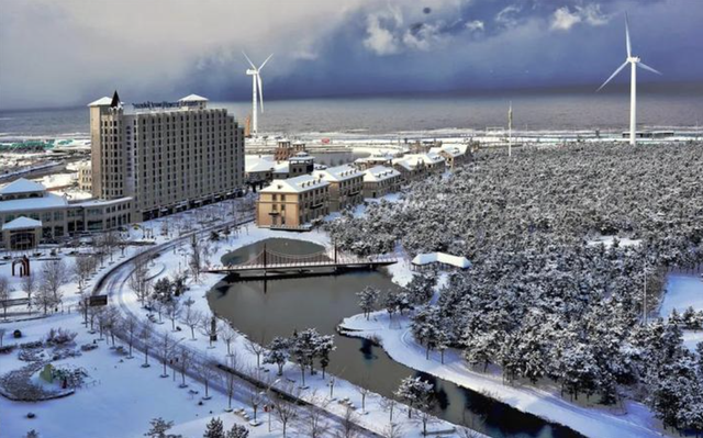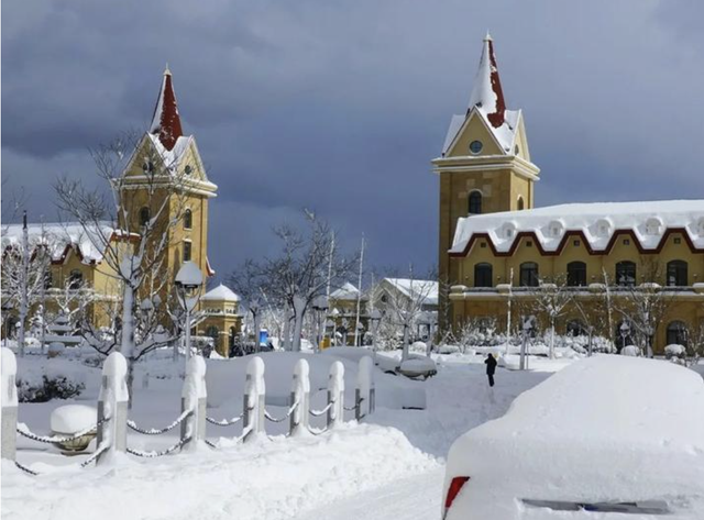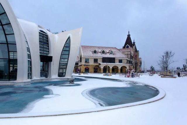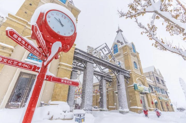 雪后的那香海小镇,包裹着厚厚的白雪,文化艺术中心那地标性的建筑在白雪覆盖下充满异域风情;香海花街上,尖顶白墙与赤色的屋瓦、浪漫的街区、在雪中漫步嬉戏的人们,共同描绘出一幅生动斑斓的油画。