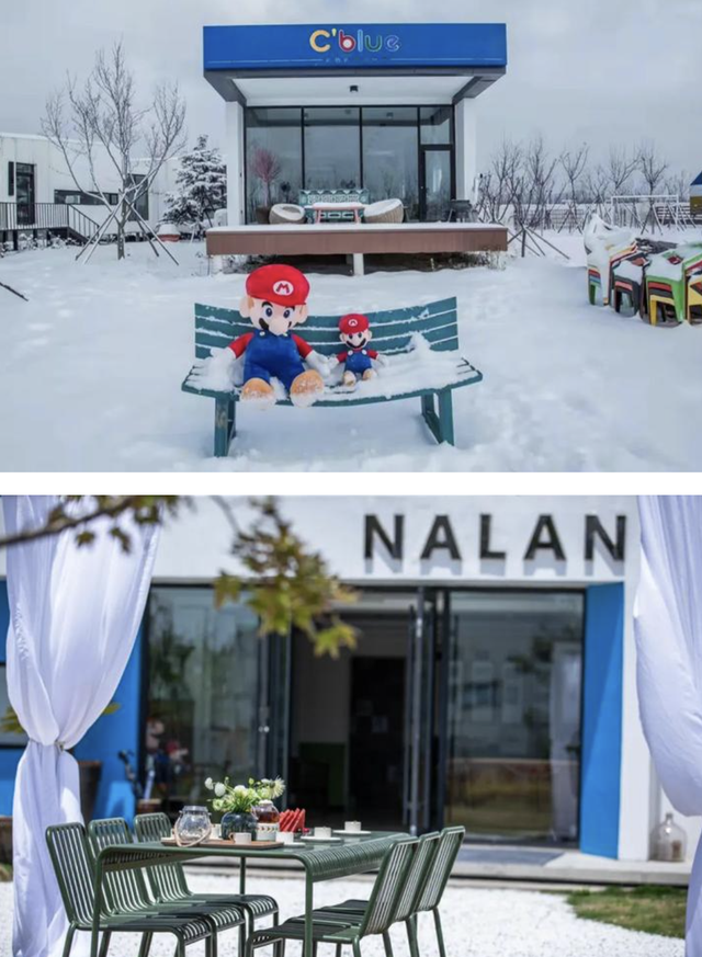 同样位于车祝沟村的那蓝民宿,是山东省旅游饭店评定委员会官方评定的威海地区唯一一家五星级民宿。配套有时光容器影像馆、生活纪念馆、彩色的蓝咖啡馆、亲子足球场、儿童无动力微乐园、地中海花园壁炉烧烤区等室内外活动场地,可供社交电商直播打卡、亲子纪念写真打卡、父母时光回忆打卡、朋友吐槽欢聚的百态打卡等等场景所需。