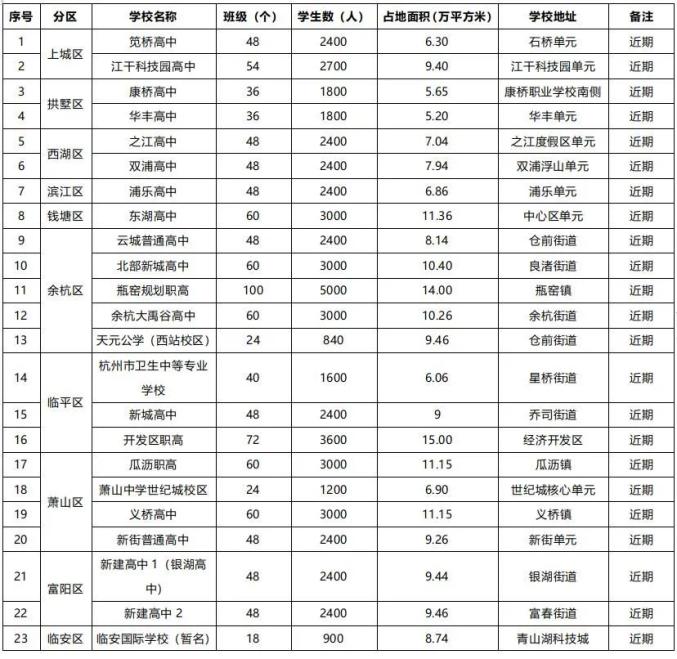 原标题:《新建23所!杭州市区高中学校最新布局规划来了》