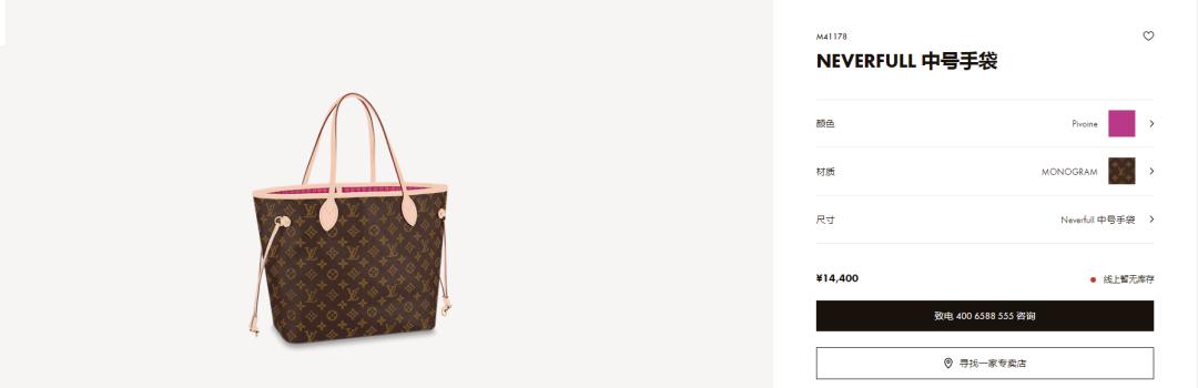 而在小红书上,也有用户反馈,2016年几千块买的Neverfull手袋现在都涨了快一倍了——LV官网显示,Neverfull中号手袋目前官方售价14400元。