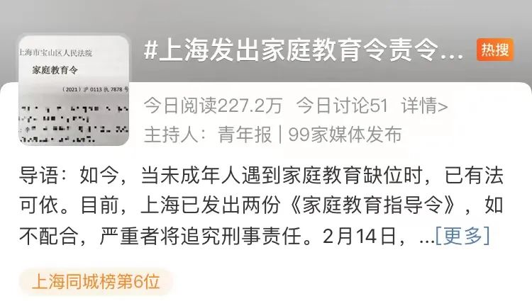 原标题:《动真格了!上海已发两份《家庭教育指导令》,督促依法带娃》