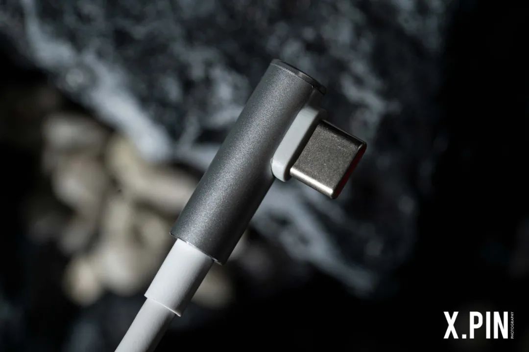 包装盒里自带一个 120W 充电套装,这里有一个值得一提的细节,那就是原装的数据线就是弯头的,非常适合充电的时候打游戏,这点要给好评。
