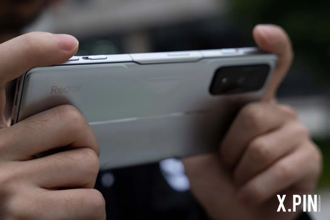 而红米 K50 电竞版的实体肩键虽然并非首创,但这样确实能够让手机模拟出手柄扳机的操作体验。