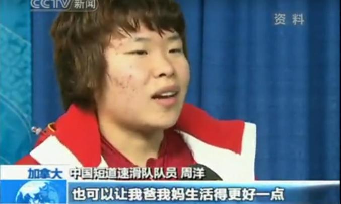 在2010年温哥华冬奥会上,周洋夺冠后也说过一样的话:“拿了金牌以后可能会改变很多。首先肯定会让自己更有信心,也可以让我爸我妈生活过得更好一点。”