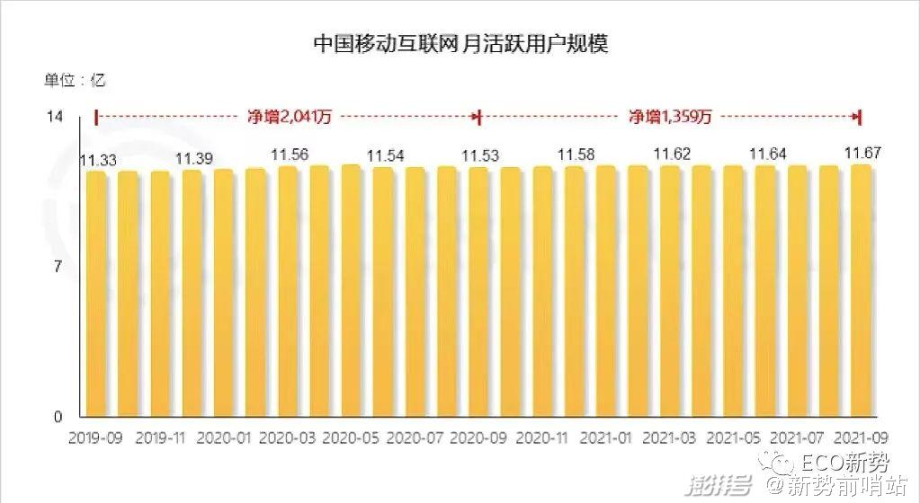 根据QuestMobile发布的《2021中国移动互联网秋季大报告》数据,截至2021年9月,中国移动互联网月活用户为11.67亿,虽然看上去很美,可早在2019年同期,这个数字就已经达到了11.33亿,增速见顶已是事实。
