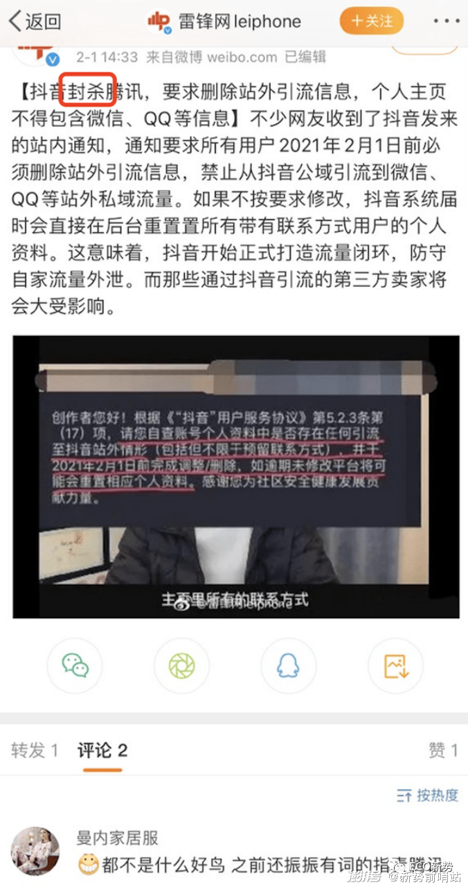 如今抖音与微信为了外链问题纷争多年,抖音与淘宝外链也几度分分合合。但在站稳脚跟之前,字节跳动亦敌亦友的对手其实是微博。