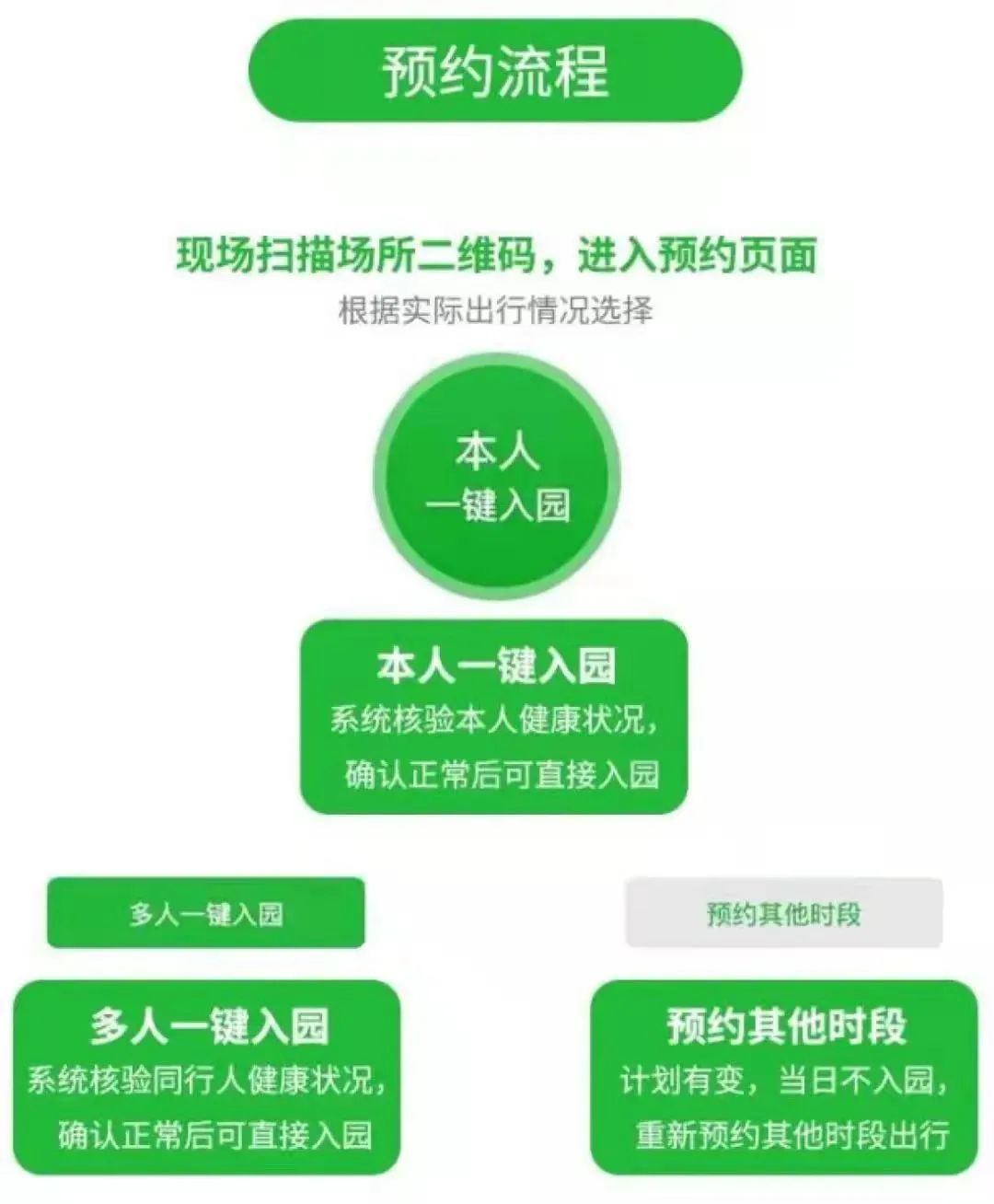 未提前预约的游客到达景区后,有序扫描景区入口处“文旅预约码”,核验成功后通行免费入园。