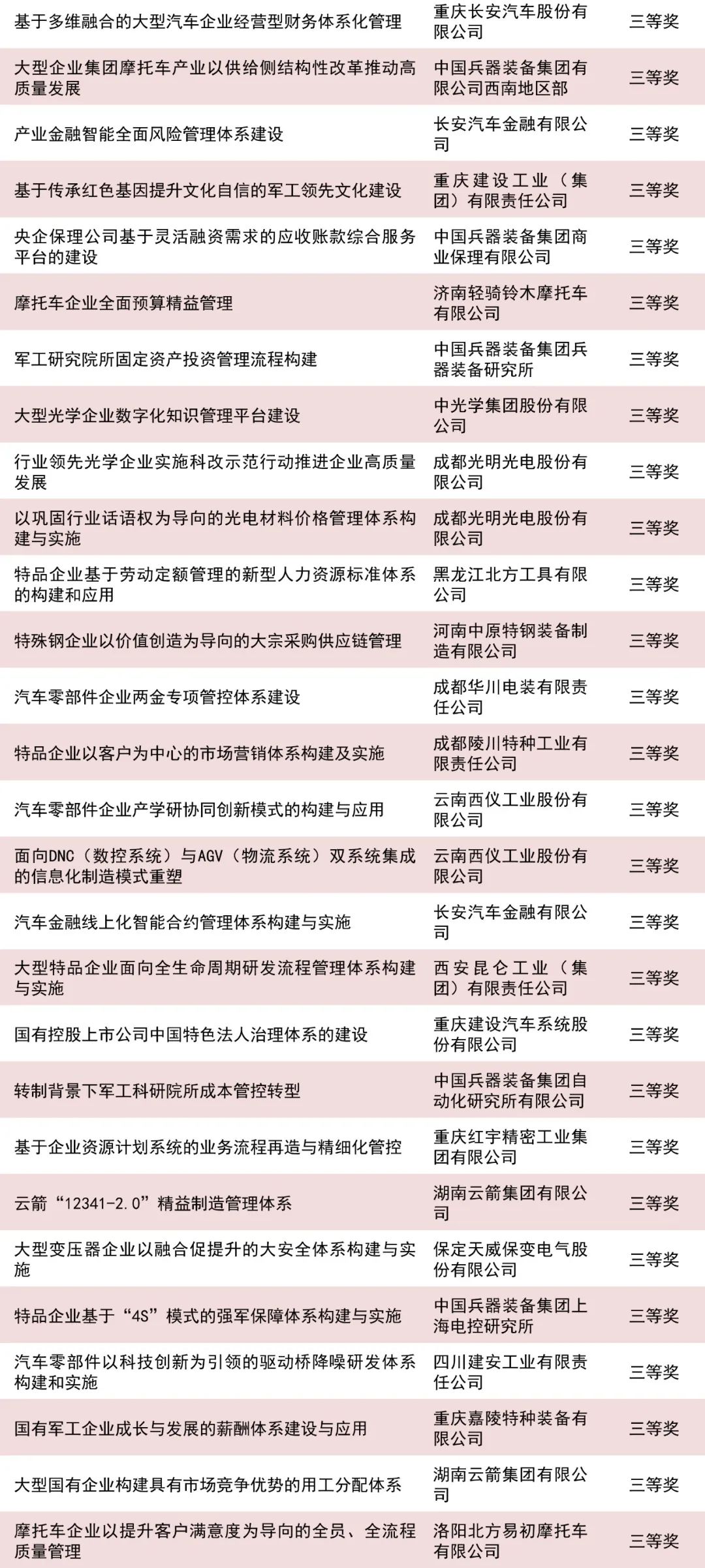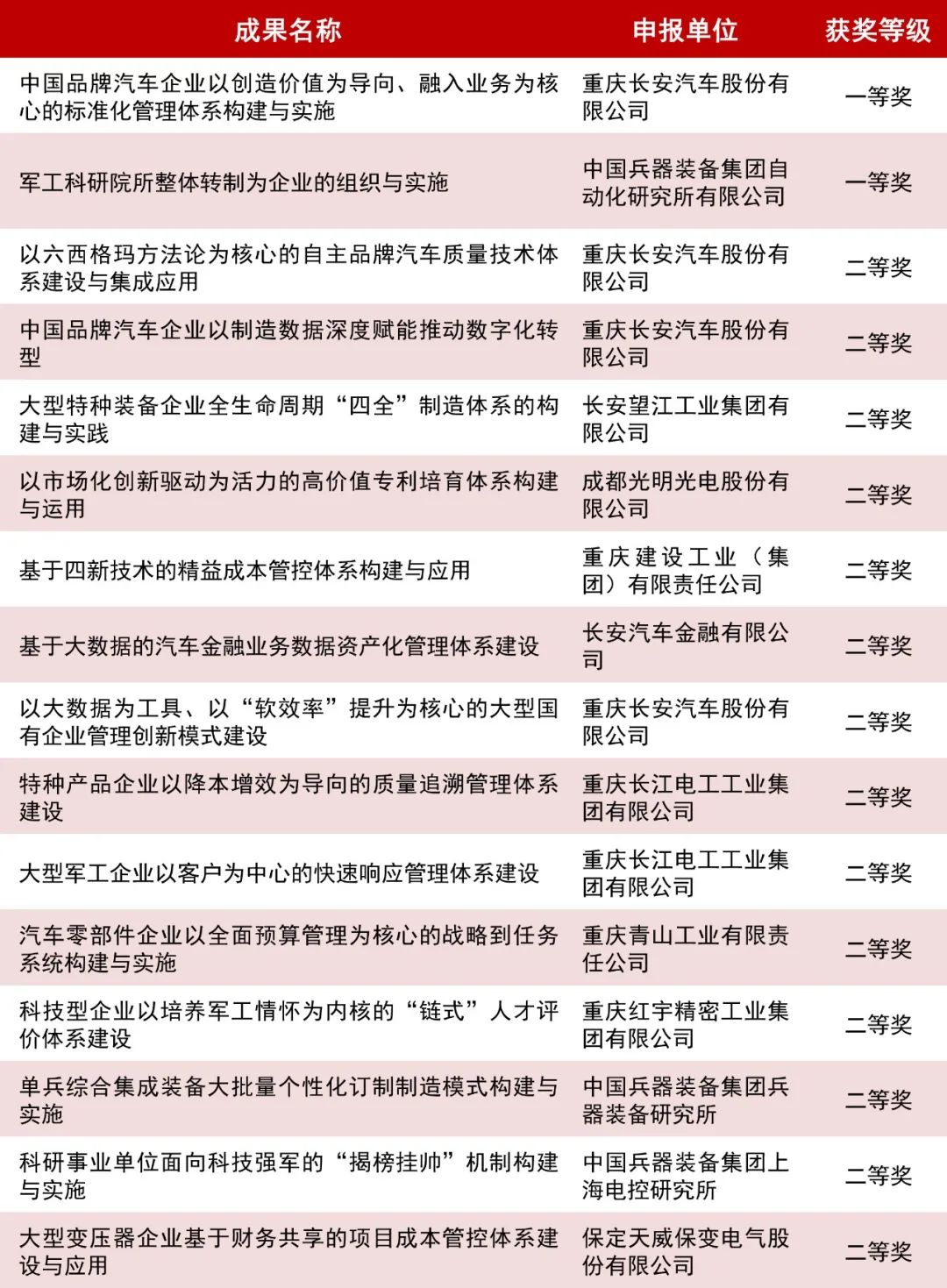 原标题:《附完整名单|兵器装备集团管理创新成果获奖创历史新高!【管理对标世界一流<16>】》
