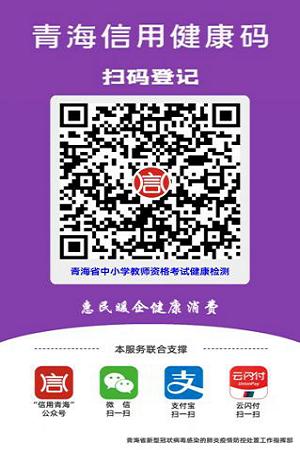 为精准做好考试疫情防控工作,切实保障广大考生的自身安全,所有考生在成功申领“信康码”并检查核对“信康码”个人信息无误的基础上,须按要求扫描“青海省中小学教师资格考试健康监测”场所登记码进行健康信息打卡。